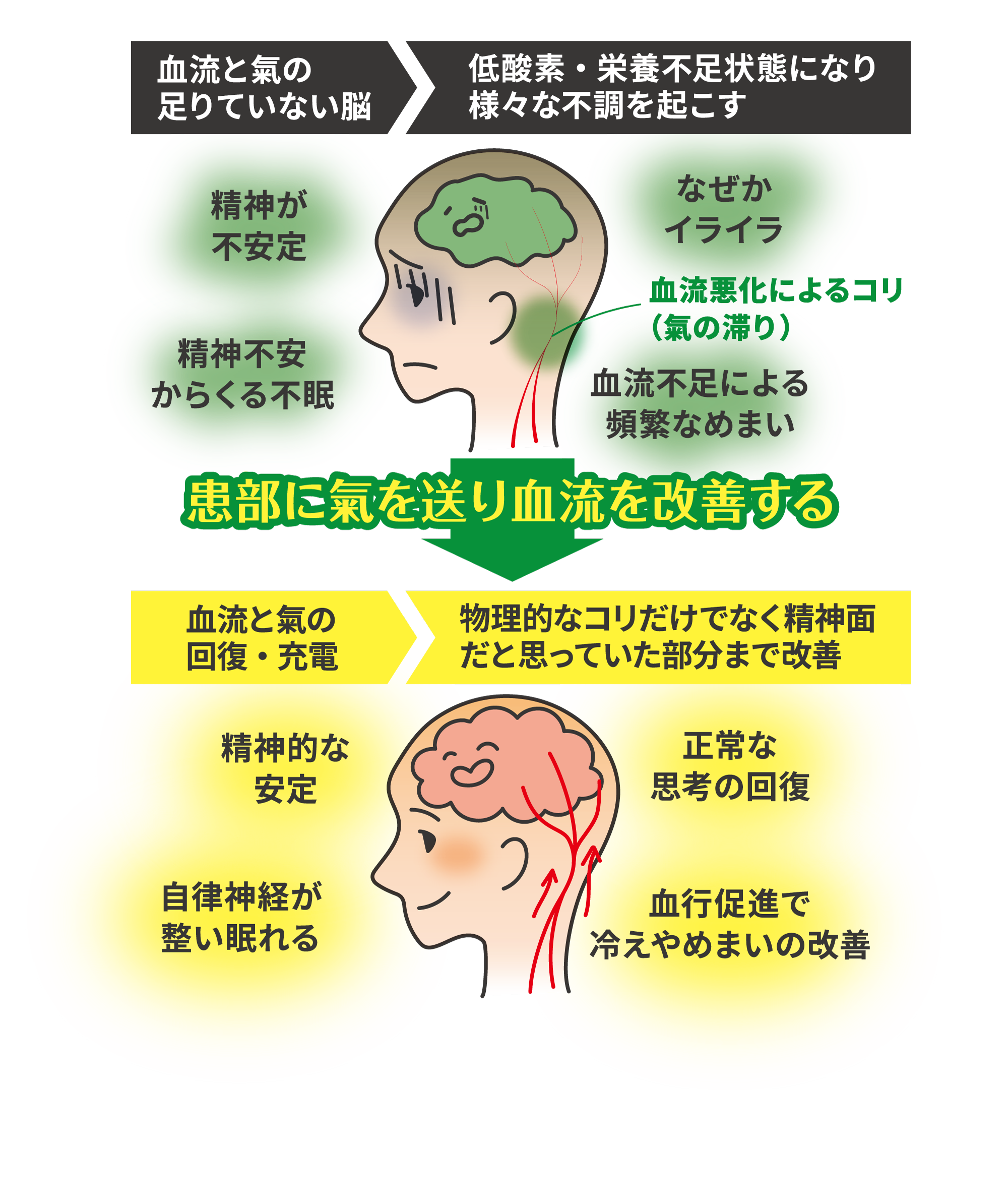 どうして血流で、うつ、不眠、めまい、の症状が改善できるの?